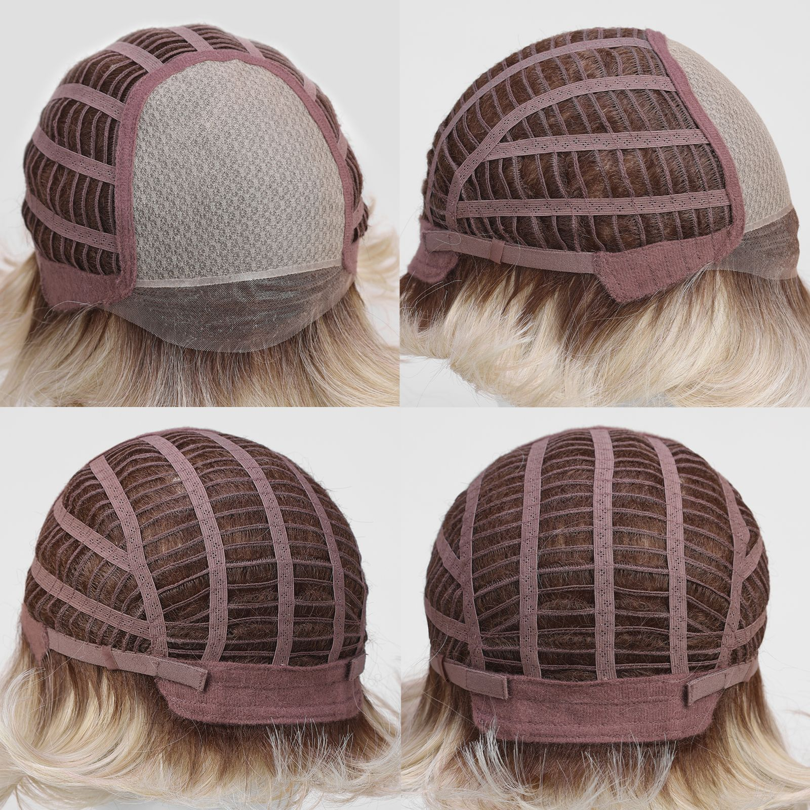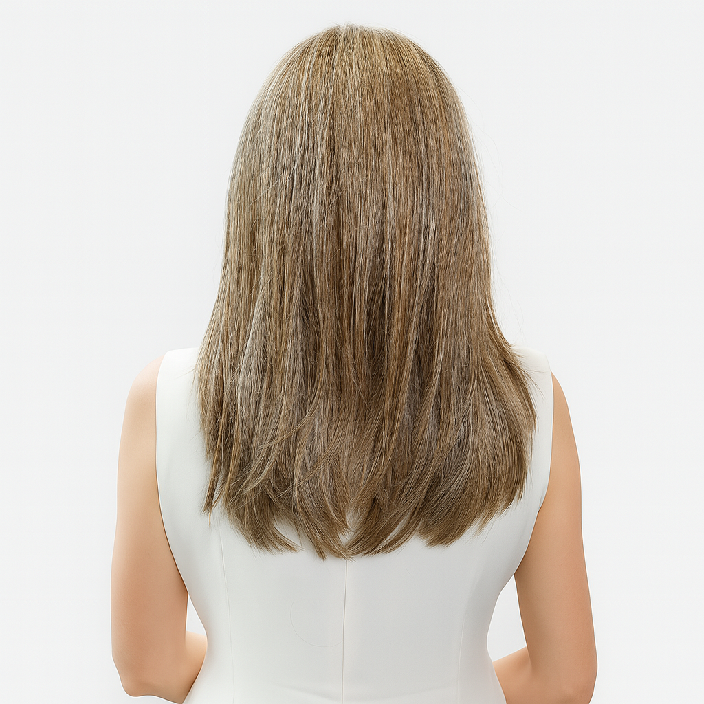 Der Monofilament-Scheitel wurde sorgfältig in Handarbeit geknüpft und verleiht der Perücke eine täuschend echte Optik, als würde das Haar direkt aus der Kopfhaut wachsen. Kombiniert wird dieser Bereich mit einem doppelten Innen-Netz, das speziell entwickelt wurde, um Reizungen und Juckreiz zu minimieren, besonders angenehm für empfindliche oder sensible Kopfhaut. So eignet sich Glow Jennifer ideal auch für Trägerinnen mit Haarausfall oder während medizinischer Behandlungen.