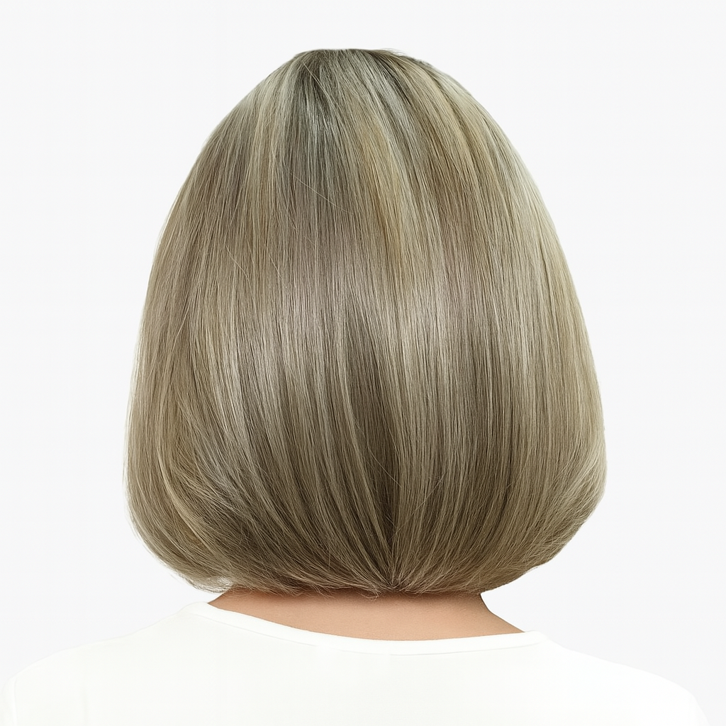 Die Glow Larissa überzeugt optisch mit ihrem klassischen Pixie-Cut, der modern interpretiert wurde. Die Haarfarbe zeigt einen dunkleren Ansatz, der sanft in ein helles, kühles Blond übergeht – ein Farbverlauf, der Tiefe verleiht und die Frisur lebendig wirken lässt. Mit einer Haarlänge von ca. 30 cm (12 Zoll) ist dieser Schnitt besonders leicht zu pflegen und vielseitig tragbar.