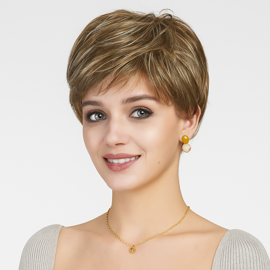 Die Glow Malia überzeugt durch ihren modernen, femininen Kurzhaarschnitt mit einer Länge von ca. 12 cm. Das hochwertig formbare Kunsthaar lässt sich ganz nach Wunsch stylen und bleibt dennoch pflegeleicht und dauerhaft in Form.